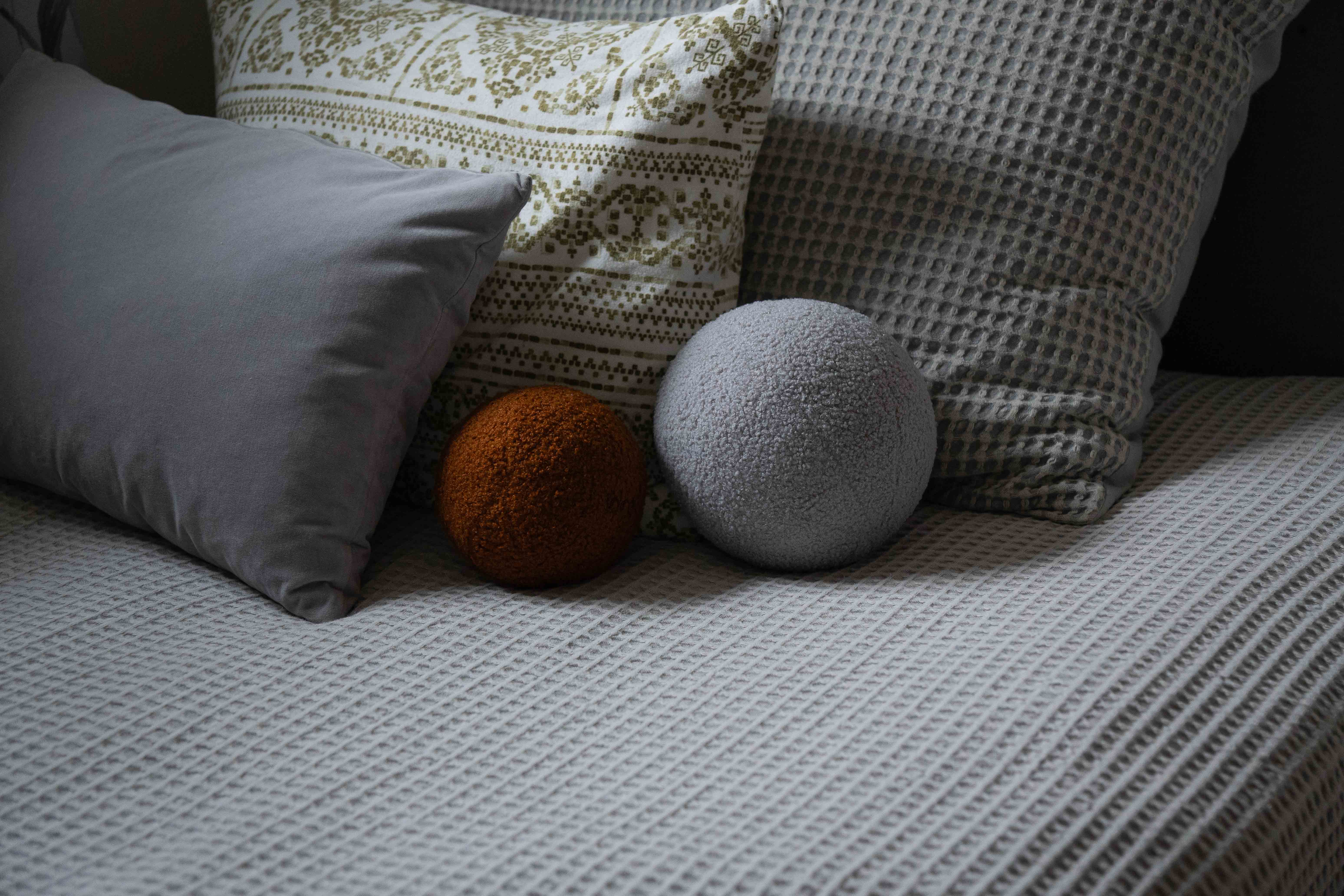 Custom corduroy and fleece variants are used to keep inneball Home durable and clean, and the same light composite filling ensures the ball is both light and bouncy. The lightness and stiffness is part of what sets inneball apart from other round pillows, as it makes it carry far less inertia while being practically silent.